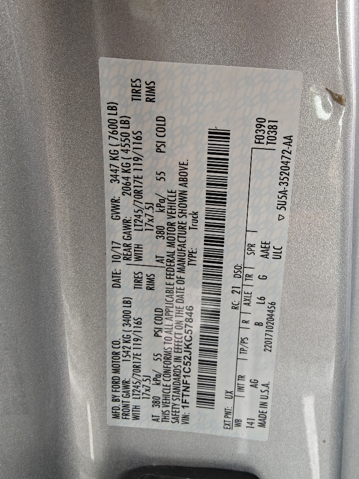 Vehicle Inquiry for 2018 Ford F-150 2WD Reg Cab 126" XL